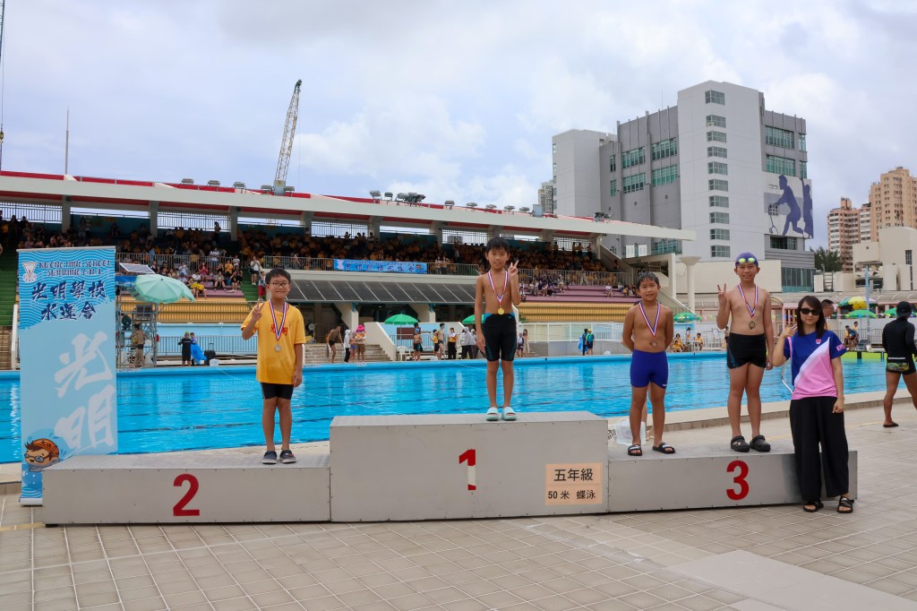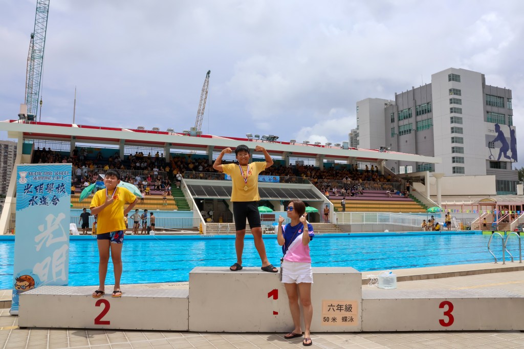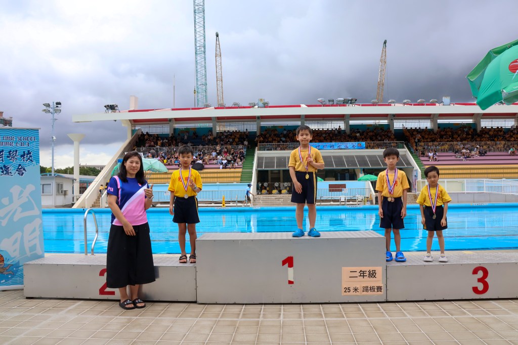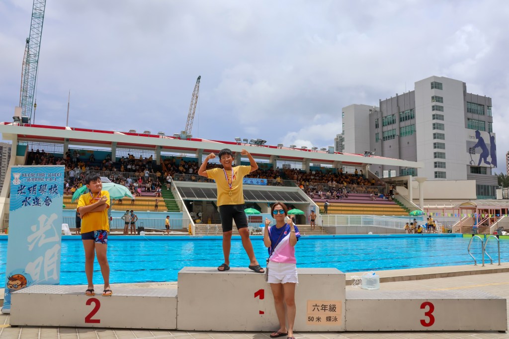 2025-06-132025-06-17 第16屆光明水運會 本年度水運會首次於元朗泳池主池舉行,參賽同學達到100人,十分欣賞每一位勇於挑戰自我的同學,雖然水運會當天天氣欠佳,但所有參賽者皆能完成比賽,實在了不起。亦恭喜所有獲獎同學,平日的努力可以換來豐盛的收獲。沒有參賽的同學亦在看台上為自己所屬班別或支持的朋友落力打氣,亦有不少製作精美的「打氣牌」應援,氣氛相當熱烈!水運會能夠順利完成,當然少不了老師們及所有工作人員的功勞,辛苦各位在惡劣天氣下,仍冒雨堅守在自己的崗位上執行工作,令水運會能在安全的情況下順利完成! 分享此文: 按一下即可分享至 X(在新視窗中開啟) X 按一下以分享至 Facebook(在新視窗中開啟) Facebook 喜歡 正在載入... 相關